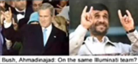 以下、フランス大統領「ニコラ・サルコジ」元アメリカ大統領「ビル・クリントン」や「J・W・ブッシュ」、現イラン首相「マフムード・アフマディーネジャード」、更にあの亡くなったPLOの「アラファト議長」が強烈なので紹介したいと思います。一応確認ですが、ここに紹介出来るのは極一例ですので、誤解の無い様に願います。欧米の内閣の数十%はイルミナティーかフリー・メーソンリー、又その他の組織の関係者で占められています。これを脅威に思わない方は頭のネジが緩んでいるか想像力が無いと云わざるを得ない訳ですが、時折、このサインを偶然の産物とする解釈をする評論家やコメンティーターもいますが、もうそれはナンセンスと言わざるを得ない状況です。流石に、インターネットの情報力は凄いものです。